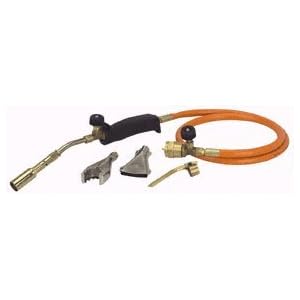 THREE TORCHES IN ONE! Three interchangeable tips let you solder, thaw, sweat pipes, and heat large surfaces Includes torch 3 burners 3/4'' torch nozzle, 7/8'' brazing tool (for copper pipes), 1-1/2'' flat burner, soldering tool hose and instruction manual Uses standard propane bottle 350 PSI working pressure 44'' long hose Propane not included .. Read More >> or Full Reviews >>